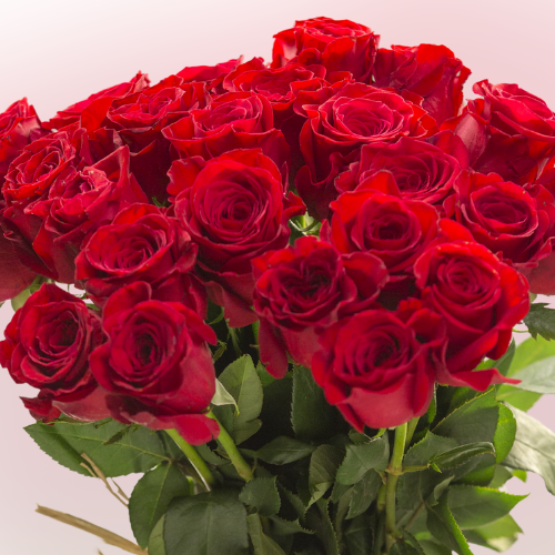 Premium red roses, known for their rich color and velvety petals. Choose between a clean, minimalist presentation or elevate your arrangement with the addition of delicate baby’s breath and lush mixed foliage for a fuller, more romantic look.
